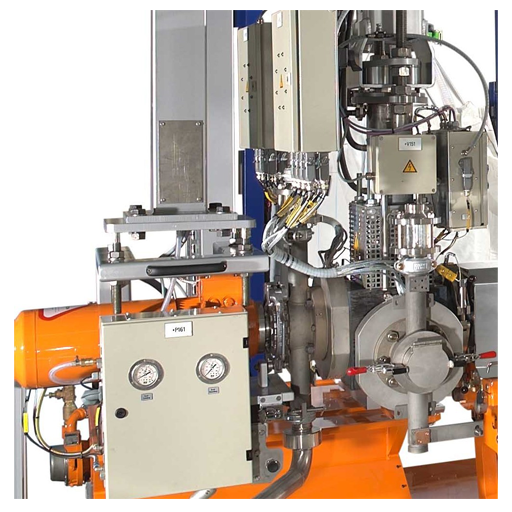 借助双向聚合物开车阀(BiPoDV),熔体在生产过程中被依次分流至不同的方向。这意味着,根据作业要求,机器操作员可以使用两个可以单独配置的造粒头。操作员可以为下一个任务准备水下造粒机,并在全生产条件下组装、加热和紧固造粒工具。所有连接通道都可以自由进入,因此可以彻底清洁最近使用过的通道。更换产品时,旋转聚合物开车阀外壳并将其提升到新的生产位置,即可将熔体导向新的工具。下一个生产作业中熔体方向的改变可以在很短的时间内完成,无需其他工具。升降和旋转机构确保在几分钟内切换至准备好的已加热模板。